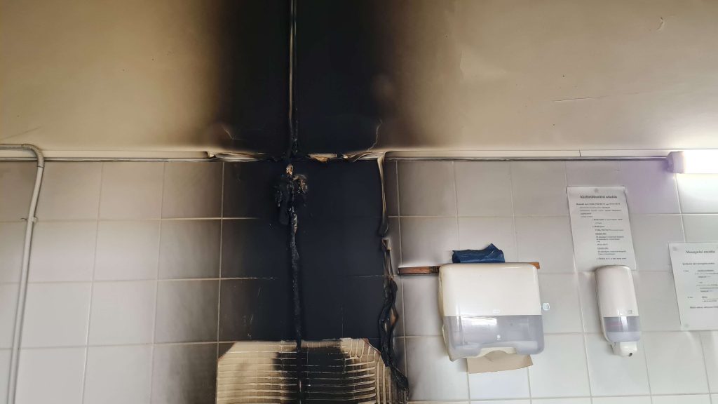 Szeptember 16-án, a hajnali órákban az élület gondnokát ébresztette a riasztó, tüzet jelezve. Mire odaért a gondnok, csak sűrű füstöt tapasztalt. A tűz már kihunyt a zárt tálalókonyhában. Egyértelmű volt, hogy a falban lévő elektromos vezeték gyulladt ki. Értesítette az intézményvezetőt, aki rögtön a helyszínre érkezett.