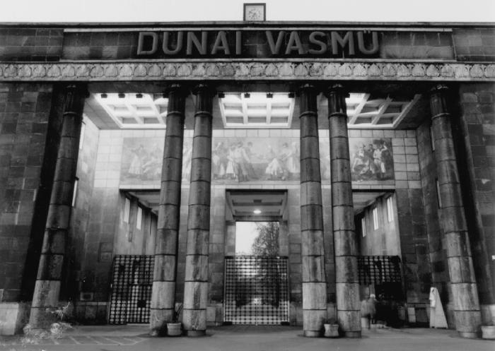 A Dunai Vasmű főbejárata Domanovszky Endre Munkás-paraszt szövetség című freskójával