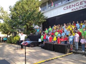 Gyerekek, szülők méregették az iskola előtt álló furcsa autót.